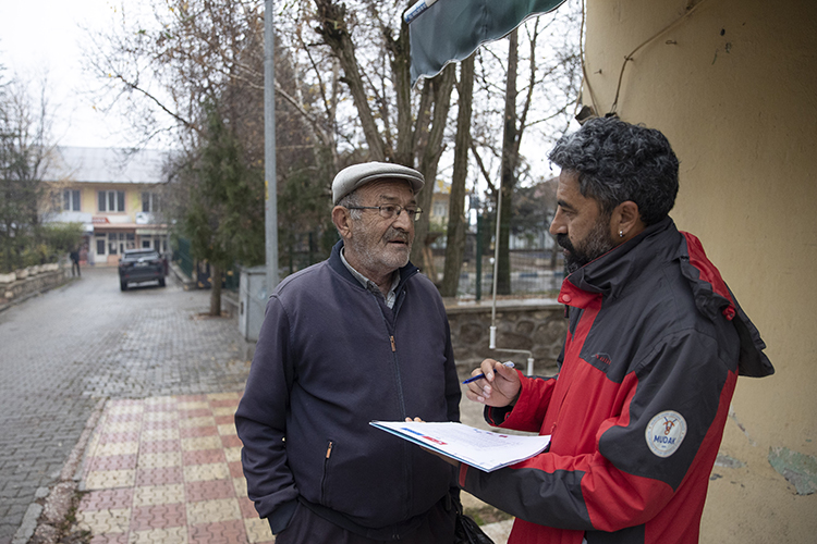 Son olarak Nazımiye ilçesini ziyaret eden gönüllüler, vatandaşlarla görüşerek deprem öncesi yaşanan risk ve tehlikelerle ilgili bilgilendirme yaptı.